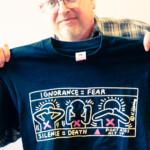 Art was an important facet of the AIDS activist movement of the 1980s and 90s. The art collective Gran Fury designed a number of iconic images used on tee shirts along with a number of other artists including well-known artist and activist Keith Haring who died of AIDS in 1990. Islanders Stephen Floyd and Phil Dunn were members of the activist group ACT UP and RATS (Radical Action Truth Squad) and saved tee shirts from the era.